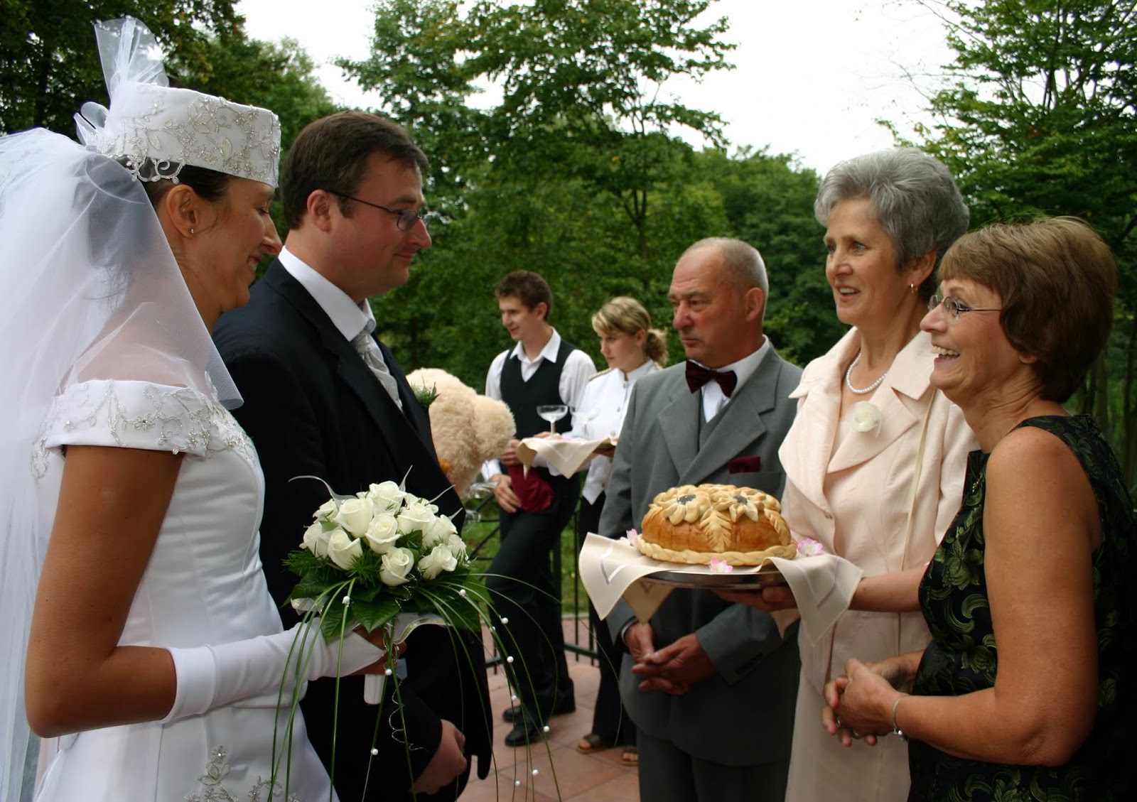 5) Parents of the bride and groom welcome their children and all guests with a round loaf of bread and salt, expressing that they share in the blessings of eternal faithfulness and love. They often quote Sacred Scripture: Love bears all things, forgives all things…”
